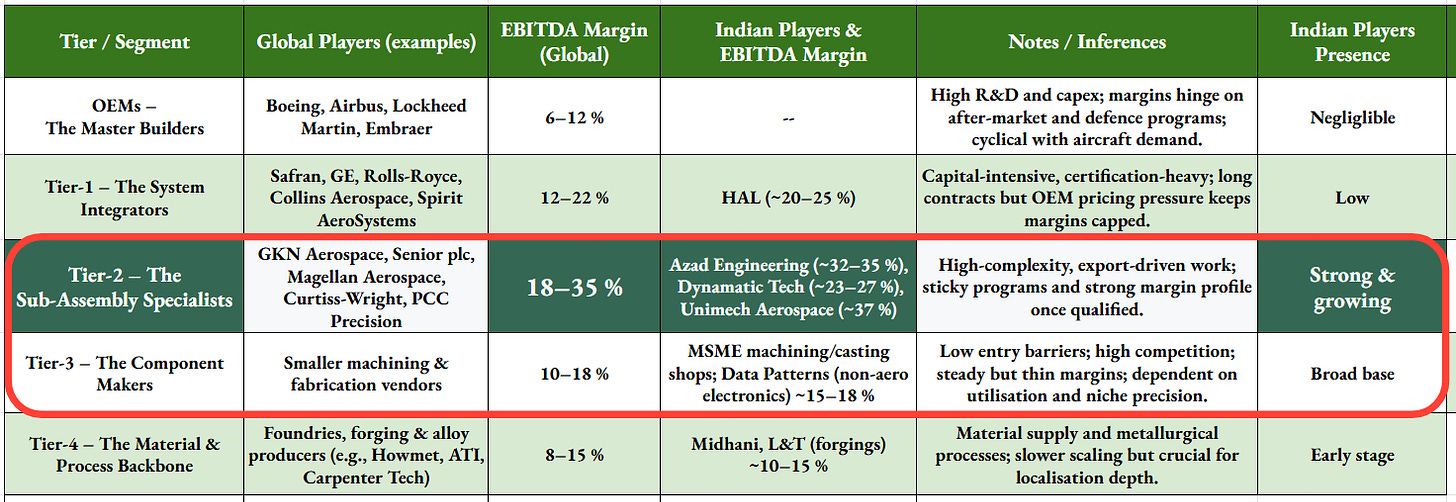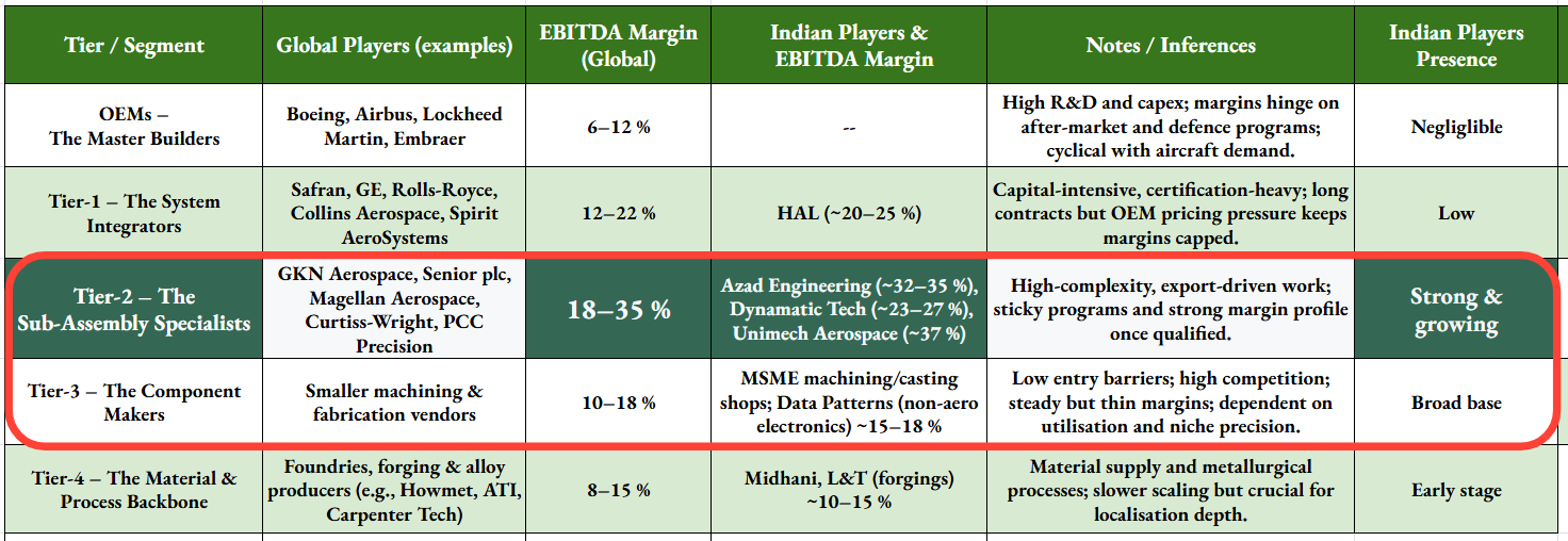 mostly Tier-2 and Tier-3 vendors, quietly machining parts for global programs while others tweet about “defence exposure.”